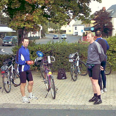 In diesem Jahr wollten wir eigentlich nur bergrunter fahren. Aber bis Kelberg hatten wir schon einige Höhenmeter in den Beinen. Nach kurzer Frühstückspause fuhren wir weiter ins Elztal, nur bergab bis Monreal, über Mayen nach Andernach. Nach dem abendlichen Kirmesbesuch, lief es am nächsten noch nicht rund. Zum Glück ging es wieder nur bergab, querfeldein über Sinzig, Ahrweiler, Altenahr zurück nach Üxheim. Doch noch reichlich Höhenmeter!