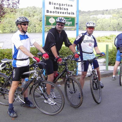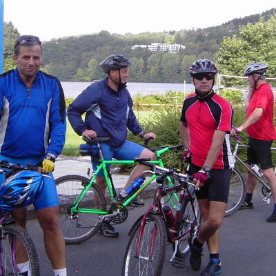 Das Bit hatten wir uns verdient. Jede Menge Höhenmeter gabs auf der Hintour. Ein Verfahrer (Helmut fuhr einer anderen Gruppe hinterher) und eine schöne, "fettige" Mahlzeit in Landscheid. Am Abend ging uns ein (Eifel-) Stern auf. Die Rücktour verlief etwas lockerer. Zum See nach Biersdorf, über Bickendorf nach Staffelstein und weiter nach Kyllburg. Ab hier über den Kylltalradweg, mit einigen Abstechern, in Richtung Heimat.