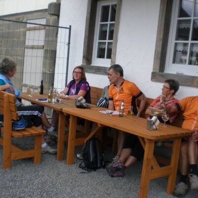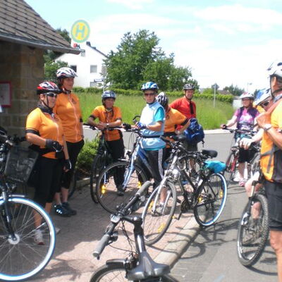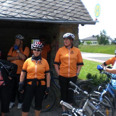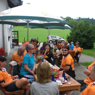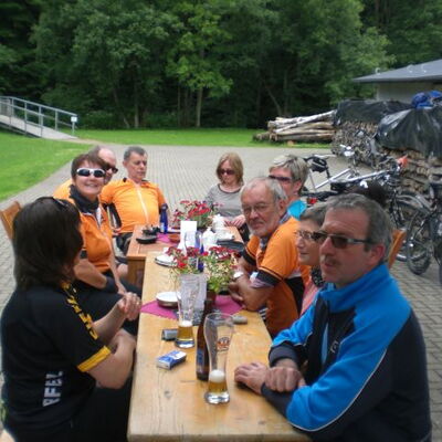 Die diesjährige Ladys-Tour führt uns Richtung Uedelhofen, leider mit einem Verfahrer, dann aber doch noch nach Ahrdorf. Von hier zur Lommersdorfer Mühle, der Kuchen wartet schon. Weiter durchs Lampertstal bis nach Mirbach zum "neuen" Backes Cafe. Nach der zweiten Stärkung finden wir den Weg auch wieder nach Üxheim.