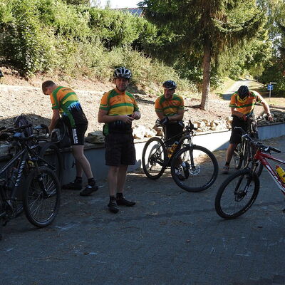 Am Samstag, stand der "Große Feldberg", mit 882 m, auf dem Programm. Von Riedelbach fuhren wir in Richtung Altweilnau und durch ein Waldgebiet entlang der Weil. Ab dem Ort Dorfweil begann die lange Auffahrt zu "Großen Feldberg". Meist über Waldwege und die letzten Kilometer über einen Wanderpfad, kämpften wir uns hoch bis zum "Gipfel". Hier oben genossen wir erstmal die Aussichten und stärkten uns im Feldberghof. Über einige Trails fuhren wir an Riefenberg und Sellenberg vorbei, wieder hinauf zum Pferdskopf. Diesmal von der anderen Seite. Den Turm schenkten wir uns diesmal, da wir noch einige knackige Anstiege vor uns hatten, bis wir wieder in Riedelbach ankamen. Mit einer kleinen Panne zum Schluss. Knackige Tour mit 54 km und 1450 Hm.