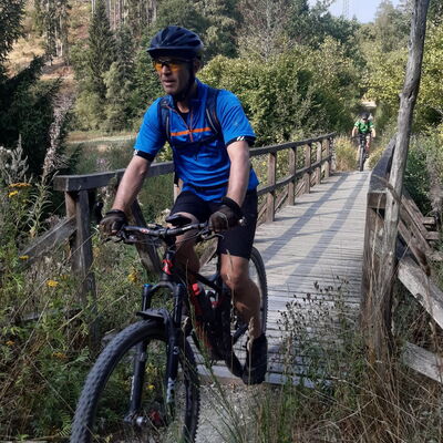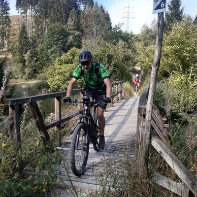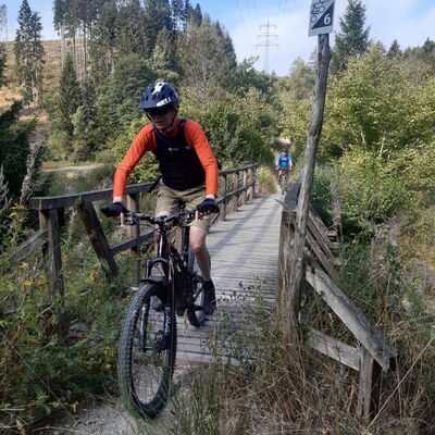 Morscholz, durchs obere Wahnbachtal weiter nach Weiskirchen. Von hier weiter über die Trails den Saar Hunsrück Steigs bis nach Losheim am See.